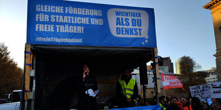 Unter dem Motto "Wichtiger als Du denkst – Freie Träger am Limit" machten die Freien Wohlfahrtsverbände AWO, Caritas, Diakonie, Paritätischer Berlin, Jüdische Gemeinde und der DGB an diesem Tag mit zahlreichen Mitgliedseinrichtungen und -projekten vor dem Roten Rathaus und dem Abgeordnetenhaus deutlich, dass eine bessere Finanzierung durch den Senat erforderlich ist, um die zahlreichen Angebote in dieser Stadt und diesem Land aufrechtzuerhalten. Die fehlende finanzielle Unterstützung hätte dramatische Auswirkungen auf das Land.